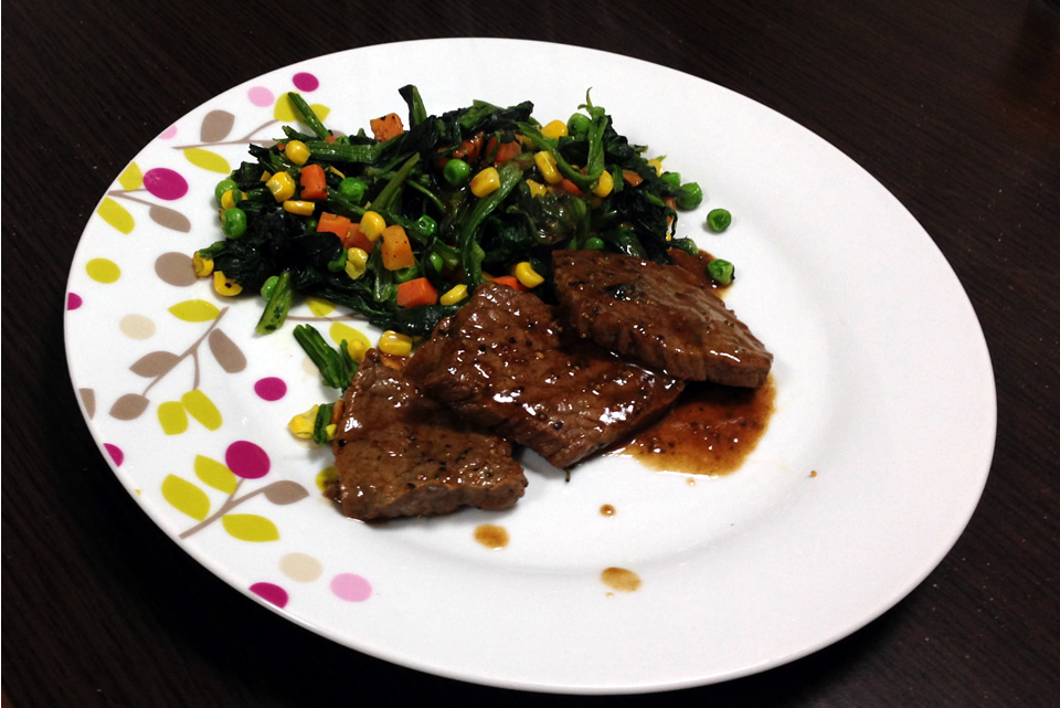 ※つけあわせは冷凍ほうれん草とミックスベジタブルの炒め物